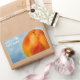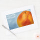 Grapefruit of bright orange colour. Textured blue background. Grapefruit symbolises abundance. Rectangular sticker for anyone. Customisable. You can change or delete the template text.