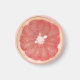 Photograph of a red grapefruit slice on pink (customisable) background.