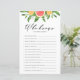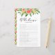 Who knows the bride best? Playful and fun citrus theme game card for your event. It features watercolor illustrations of grapefruit, oranges, baby's breath and greenery. Personalise by adding back details. This grapefruit "Who Knows the Bride" game card is perfect for summer bridal showers and wedding showers.