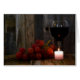 red wine with grapes and glowing candle on rustic wood