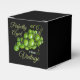 Decorate your party decor with this eye-catching grapes favour box. This design prominently incorporates vivid green elements. This favour box is easy to personalise by changing the text and customise by changing the background to a colour of your choice.