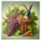 Ceramic tile is shown with a lovely grapes and wine bottle in a basket print.
