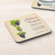 A grapevine with four clusters of wine grapes align along the left side of this cork coaster. The grapevine snakes behind the grapes against a parchment background. A great promotional item or giveaway for a wine bar, wine shop, vineyard or a vintner. Available with matching products.