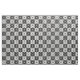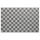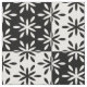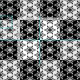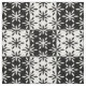 A simple black and white geometric tiled flower pattern.