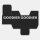 Stark Graphic text Black and White Goodies favour box. perfect for elegant simple parting gift swag or wedding favour box. Background colour and text can be customised
