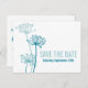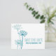 Beautiful simple aqua blue cows parsley outline flowers save the date wedding postcard. This save the date wedding invitation features a modern flower drawing in the style of cows parsley or Anthriscus sylvestris, also known as wild chervil, wild beaked parsley, keck, or Queen Anne's lace. Edit this invitation with your own words, wedding date and names.