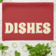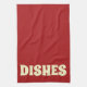 Graphic Dishes kitchen towel. Background colour and text can be customised