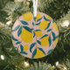 Graphic illustrated lemons: pink seamless pattern glass tree decoration