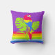 Simple bold graphic colourful rainbow striped hues pillow with a tropical macaw parrot bird graphic. Art and design by Sarah Trett. Would be a great additional to bright and colourful playroom or kids rainbow themed bedroom.