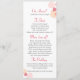 Double-sided simple modern petal confetti style floral wedding dinner reception menu in pretty fall colours of deep red and orange hues. Uniquely designed by Sarah Trett.