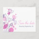 A beautiful and simple pink purple plum and navy blue flower outline and graphic petals save the date wedding postcard. Part of the graphic modern flower petal wedding set. An elegant exclusive design by Sarah Trett.