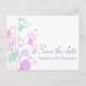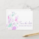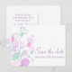 A beautiful and simple pink purple and mint green flower outline and graphic petals save the date wedding postcard. Part of the graphic modern flower petal wedding set. An elegant exclusive design by Sarah Trett.