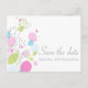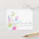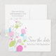 A beautiful and simple pink aqua mint green and grey flower outline and graphic petals save the date wedding postcard. Part of the graphic modern flower petal wedding set. An elegant exclusive design by Sarah Trett.