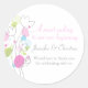 Graphic modern flower petals confetti wedding candy or sweet treat sticker. This sticker be used for your wedding candy buffet table or for favour boxes, or bags. Customise with your name and own words of thanks, currently reads A sweet ending to our new beginning, Jennifer & Christian Would love to thank you for celebrating with us. Designed by Sarah Trett.