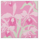Bold pink and green stylised orchid flower patterned fabric. Background colour can be changed if required currently pink. Graphic art and design by Sarah Trett.