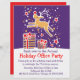 Simple stylised dashing reindeer office party flyer, perfect to inform employees of the Christmas party. Edit with your own office party details. Illustration and design by Sarah Trett.