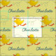Fun running duckling bird art and name graphic fabric. Ideal for making a really special sewing creation for Easter. Cute yellow ducklings with teal name text. Personalise with your own name, currently reads Charlotte. Uniquely Illustrated and designed by Sarah Trett.