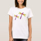 A wonderfully girly design to get for yourself or friends. The colours will complement any casual fashion you want to accompany it. There are yellows, purples, and blues creating the concept. The dragonfly was made with a cross design in mind. The wings are graphically bedazzled to give a jewel effect. Just an all around great shirt. Don't let this bargain flutter on by!