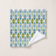 This towel set has a mid-century modern design of triangles whose bottoms have been curved, put in pairs with an oval between them. If you like the design but prefer different colours, message me.