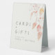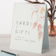 Modern simple sketched drawing and watercolor fall wedding cards and gift double sided signage in shades of red, burnt orange yellow and grey on on a off cream white. Personalise this autumn wedding gift poster with your own couples names. Perfect for a simple autumnal wedding where your table is not up against a wall, reads cards and gifts, thank you. Other matching items are available. Fall grasses and berries sketch and loose watercolor art by Sarah Trett for www.mylittleedenweddings.com