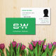 YOUR FAVORITE - Make a lasting impression with this modern business card design with monogram and (employees-) photo, on plain green and white coloured backgrounds.