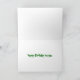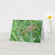 This customisable Birthday card features a detailed macro photograph of a small green grasshopper with brown mottled markings sitting on the grass. In the photograph you can see the detail of the jointed legs, long antennae and black and gold eyes of the grasshopper. The green text inside the card says, "Hoppy Birthday to you". The text is customisable so you can change it, add someones name to it or remove it to leave the inside of the card blank.