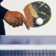 Grasshopper in Green Grass on Blue Background Ping Pong Paddle