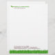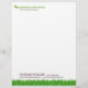 The perfect letterhead for any professional landscaper or gardening service. A lush grassy border prints on the bottom of the stationery. Your business name is highlighted by a double leafed logo. Available in matching business cards, favours and postage.