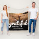 Grateful Black and White Script Custom Photo Fleece Blanket