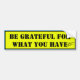 This bumper sticker reminds people to be grateful for what they have.