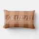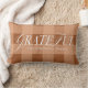 Fall in love with the perfect combination of beautiful fall foliage, autumn flowers, festive dried leaves, and cosy plaid with our fall-style grateful family cosy chic home decor lumbar pillow. Our design features stylish "grateful" displayed in elegant script and serif typography combination. Personalise with your family name and transform your space into a cosy sanctuary for unforgettable Thanksgiving gatherings and fall home decorating. Illustrations are hand-drawn original artwork by Moodthology Papery.