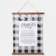 Express your gratitude with our elegant black plaid and fall leaves, hanging tapestry featuring the phrase "Grateful for Family" displayed in elegant script and serif typography combination. Designed with our hand-drawn fall leaf foliage elements and personalised with your own grateful message and your family name. Perfect for the fall season, thanksgiving, and autumn weather. All Illustrations are hand-drawn original artwork by Moodthology Papery.