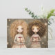 Christmas gift exchange, friends holiday card, festive gift notecard, giving gifts illustration, holiday friends card, Christmas cheer design, gift exchange scene, friendship holiday card, joyful Christmas exchange, festive gift-giving art
