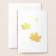 A decorative and relaxed greeting card, with golden maple tree leaves and your custom text. On front and back the leaves are fully gold foil, while inside they are photographic with a certain graphical effect.