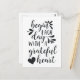 Spread an attitude of gratitude. Our handwritten typography postcard design features the quote "begin each day with a grateful heart" in soft off-black hand lettered calligraphy script adorned with swashes and a heart illustration.