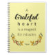 A lovely yellow notebook to practice gratitude. The cover features earth-toned wreath design and a gratitude quote that reads "A grateful heart is a magnet for miracles".