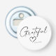 Attract that positive energy with a "Grateful Heart" button style bottle opener, featuring a unique custom design with "Grateful" in elegant handwritten script with a beautiful hand drawn heart and your personalised name. Black and white or easily edit the primary colour as you like. A great gift for yourself and maybe someone else.