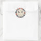 This wedding sticker features a circular design with a symmetrical floral pattern, combining soft beige, rich navy blue, and vibrant coral red colors. The central circle showcases elegant serif typography, expressing gratitude in a formal yet approachable tone. Surrounding the text are stylized daisy-like flowers and elongated leaves, creating a modern vintage charm perfect for celebrating special occasions. Ideal for adding a touch of sophistication to wedding favors or event acknowledgments, this sticker conveys warmth and appreciation through its harmonious color palette and intricate botanical motifs.