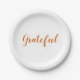 Grateful orange spice and white script calligraphy cute thanksgiving party paper plates.