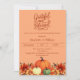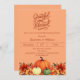 An atomic tangerine background colour. Decorated with pumpkins and orange and yellow flowers. Personalise and add the party details.