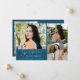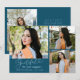 Modern and elegant graduation announcement photo card featuring 3 photos on the front and 1 on the back. The text says "grateful for your support" in script font. Add the graduate's name, information, and message to personalize this card. Teal.