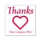 This appreciative rubber stamp design features the message "Thanks" and a customisable company name. It also features a decorative heart shape. It could be used by a professional, a company, a business, or an organisation to show gratitude to clients or customers for their support.