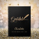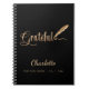 A chic black background. With the text: Grateful and decorated with a feather pen. Personalise and add a name and text (or delete)