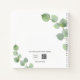 A white background colour. Decorated with elegant eucalyptus greenery sprigs. Add a name and text.