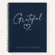Attract that positive energy with a personalised "Gratitude Journal" notebook, featuring a unique custom - modern minimal design with "Grateful" in elegant handwritten ink script, a beautiful calligraphy style heart and your personalised name. In north sea blue, grey and white or easily edit the primary colour as you like. A great gift for yourself and maybe someone else.