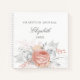 A chic white background with rose gold and white florals and silver foliage. Personalise and add your name, title and year. The name is written with an elegant hand lettered style script.