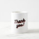 This cup features a stylish “Thank you!” logo with a unique pink to orange gradient and a shadow effect, giving it a three-dimensional appearance. The design is printed on a high-quality, durable ceramic, making it perfect for both hot and cold beverages. The white background of the cup enhances the vibrant colours of the logo, making it a standout piece for your kitchen or office.