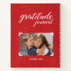 Create your own special gratitude journal with a custom photo under white corners on a printed red linen texture photo background like a scrapbook page. The words "gratitude journal" are in a white handwritten script font near the top. Your name and the year appears in a simple white sans serif font near the bottom. Personalise it with your custom text and image in the sidebar. Other inside paper styles and notebook options also available in the sidebar.