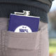 The flask itself is fine. It’s a cheap flask, obviously bought in bulk, however am prepared to overlook that. Given that it is a personalized item, I would have liked to have seen gift boxing instead of the generic packaging. Terrible printing, and/or quality. It’s a cheap, tacky vinyl. It is not cut straight and is also applied in a way that it is overhanging the bottom, causing the glue to catch on items and it will eventually roll and tear, damaging the wrap.