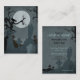 Graveyard scene with a raven perched on a narled tree with full moon on the horizon